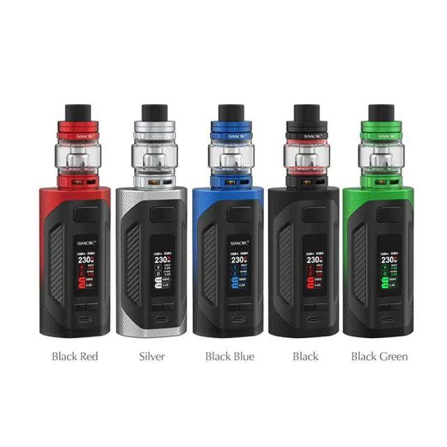 Check out the SMOK RIGEL 230W Starter Kit, featuring dual 18650 battery layout, 1-230W output range, and comes paired with the SMOK TFV9 Sub-Ohm Tank. Constructed from durable zinc-alloy and carbon fiber, the chassis of the SMOK RIGEL is lightweight yet durable, withstanding falls and drops with ease. Coated in soft touch rubber, the exterior coating offers improved grip and helps absorb shock to mitigate damage. Equipped with an ultra fast firing rate of 0.001s, the RIGEL allows for a wide wattage range of 1-230W, while delivering outstanding flavor and vapor when paired with the SMOK TFV9 Tank equipped with TFV9 Mesh Coils.
