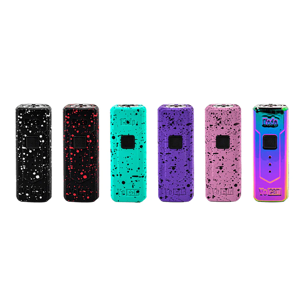 The Yocan Wulf Kodo Series 510 Battery Mod combines proven engineering with accessible design, integrating Wulf Mods' commitment to quality construction with practical functionality suited for diverse user preferences while emphasizing reliable performance through durable components, consistent power output, and full compatibility with 510 cartridges and atomizers; its compact 2-inch form factor supports portability without sacrificing battery capacity, accommodates cartridges of varying sizes without adapters, and features a single-button interface with three adjustable voltage settings—2.5V, 3.0V, and 3.5V—indicated by LEDs for optimized heating, along with a hanging hole for convenient attachment; available in colorways such as Black-White Spatter, Teal-Black Spatter, and Full Color, this 9-piece display unit caters to retailers seeking premium, feature-rich vaping hardware backed by Wulf Mods' reputation for innovation, customer satisfaction, and continuous refinement, making the Kodo Series a dependable choice for users prioritizing quality, reliability, and user-friendly performance.